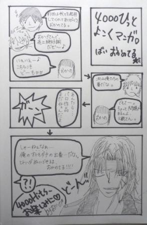 というわけでもうサイトは4000Hitsいっちゃったけど、恒例の御礼イラストの予告まんがです。さてどうなるかなー??♪